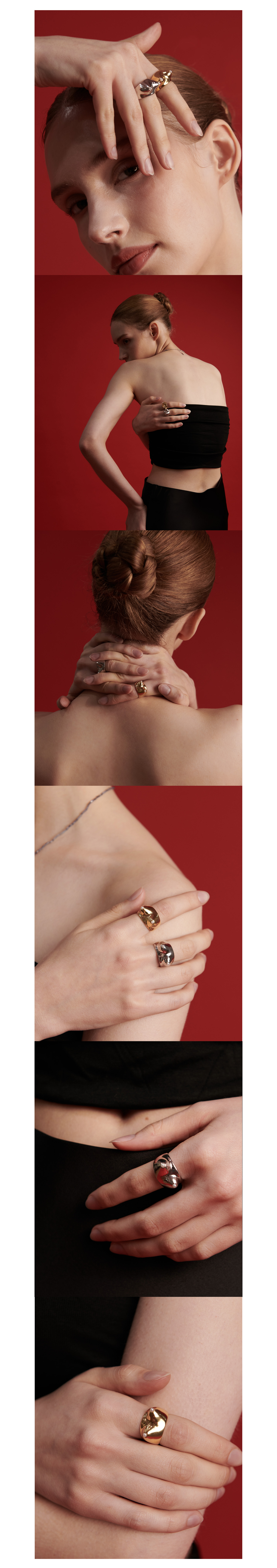 이엘리 작가의 대표적인 모티프인 '몸통-토르소’는 ‘마술적인 모먼트’의 상징입니다. 토르소는 현실에서 꿈으로 가는 통로이자 경계가 무너지는 문이며, 상상 속 세계의 문을 여는 열쇠가 됩니다.꿈속 풍경처럼 펼쳐지는 인체형상은 인생의 사랑과 애정, 꿈과 희망을 가장 먼저 느끼는 감각기관으로서 작가의 판타지컬한 상징들입니다. 니플에 작은 담수진주가 셋팅된 '펄 니플 토르소 링'은 키치한 유머러스함을 전달합니다.